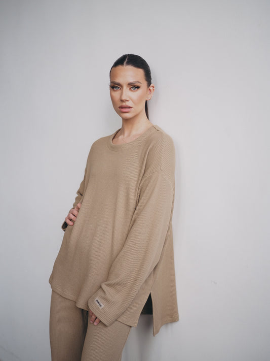 SMR LOUNGE laisvalaikio kostiumas su šortais (šviesiai rudos spalvos) - paskutiniai vienetai!