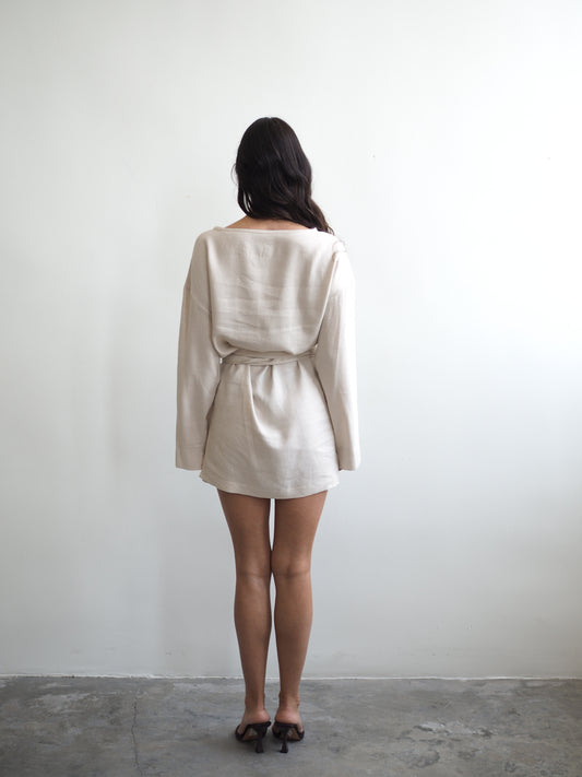 BASSO trumpa lino-bambuko suknelė (šviesaus smėlio spalvos)