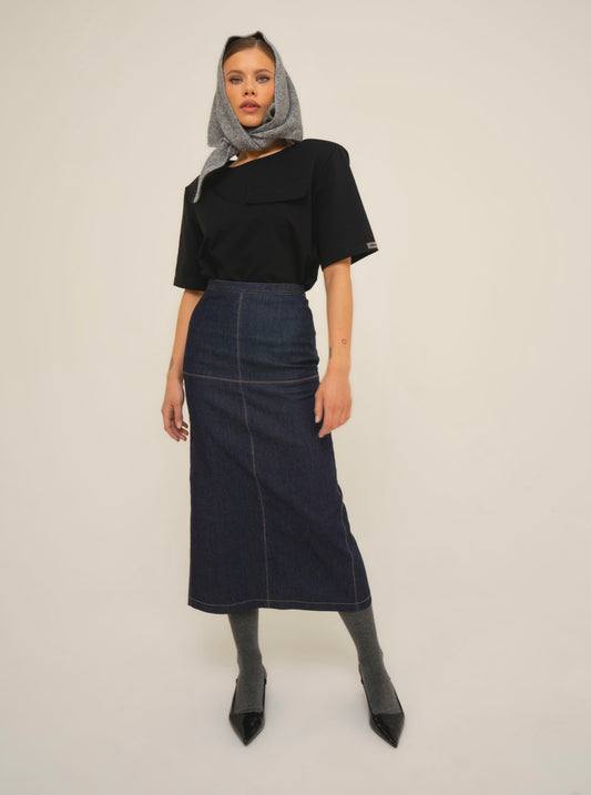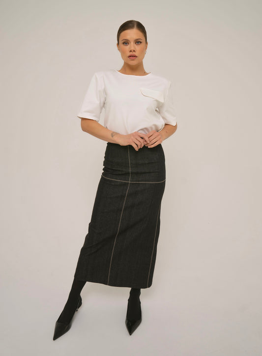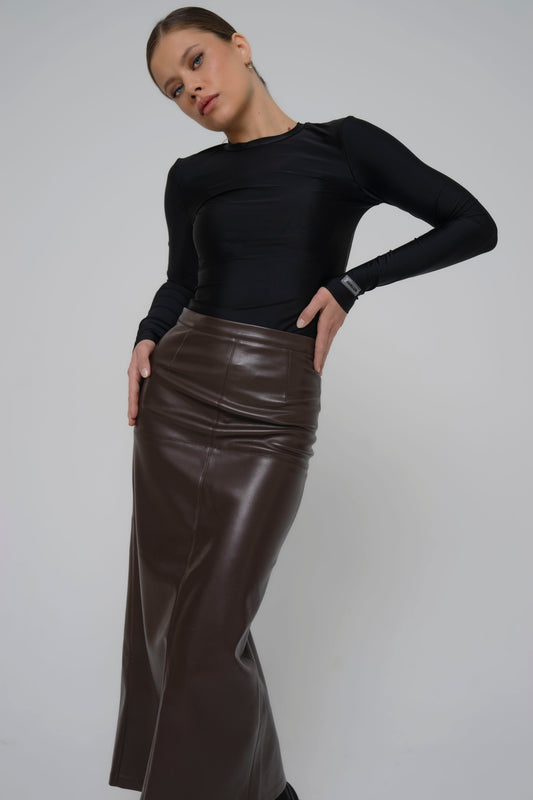 Ilgas dirbtinės odos sijonas (tamsiai rudos spalvos)