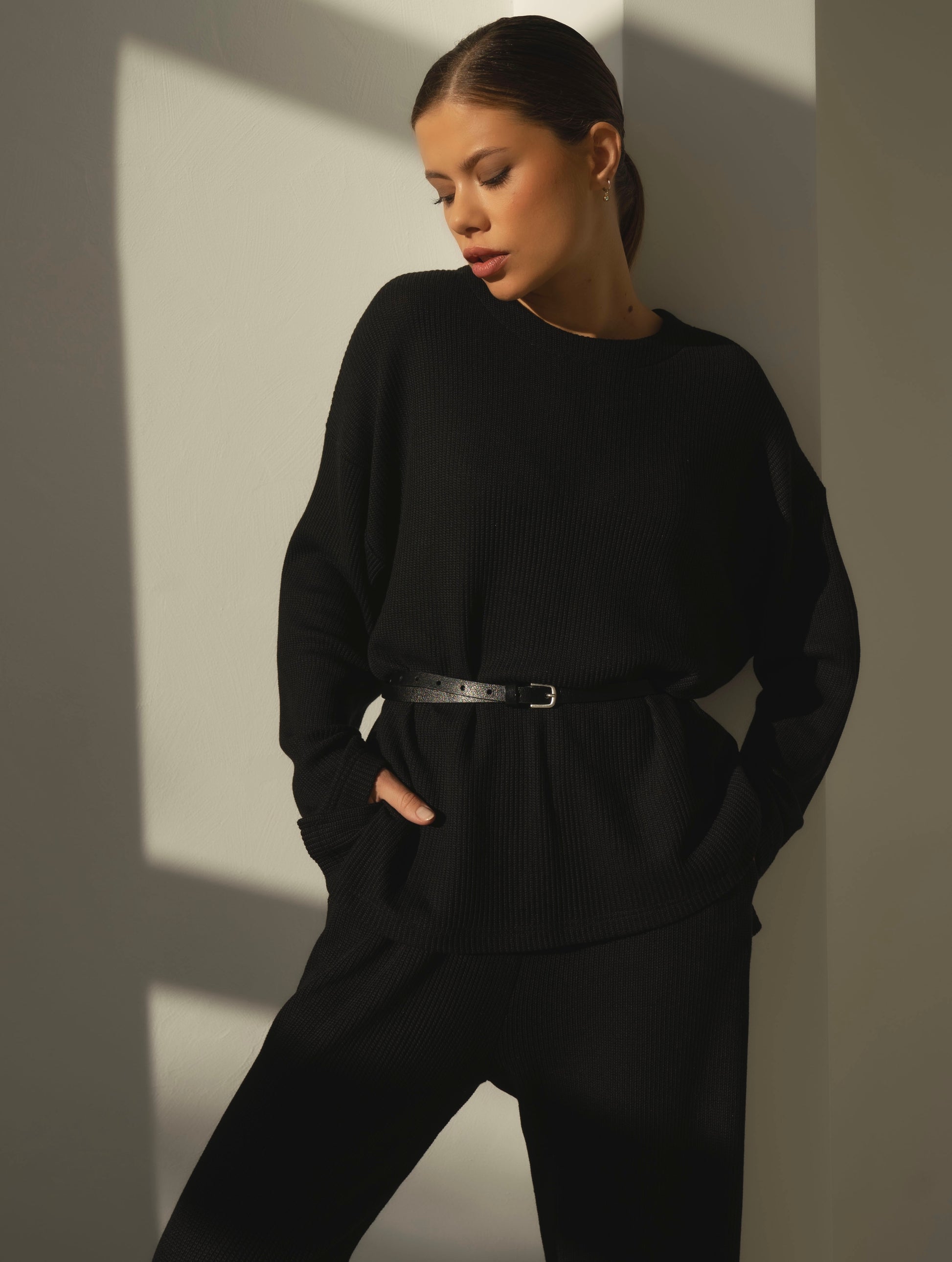 - Oversized sweater. The highest quality modal and cotton fabric, specially extended sleeves and the overall length of the garment add extra flair.