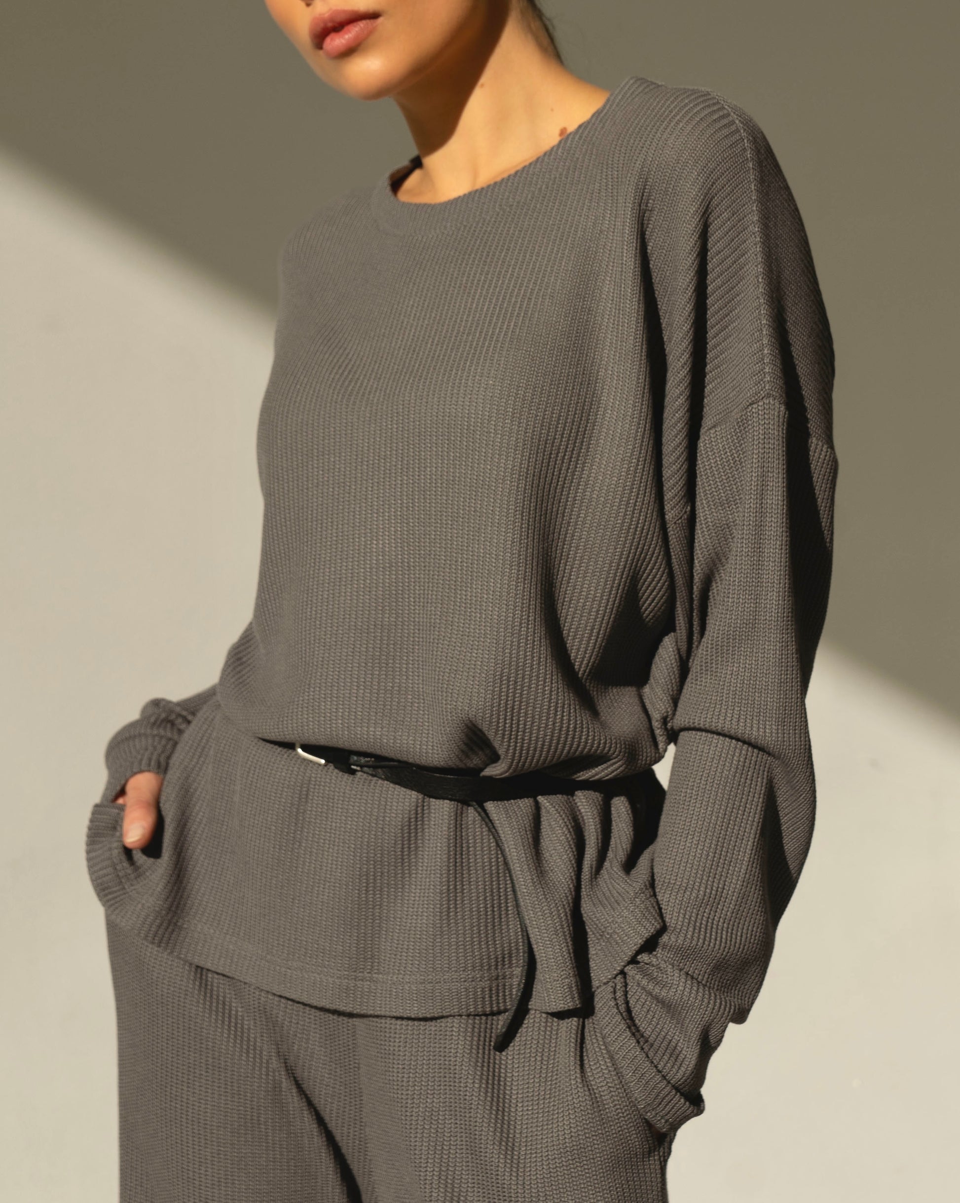 - Oversized sweater. The highest quality modal and cotton fabric, specially extended sleeves and the overall length of the garment add extra flair.