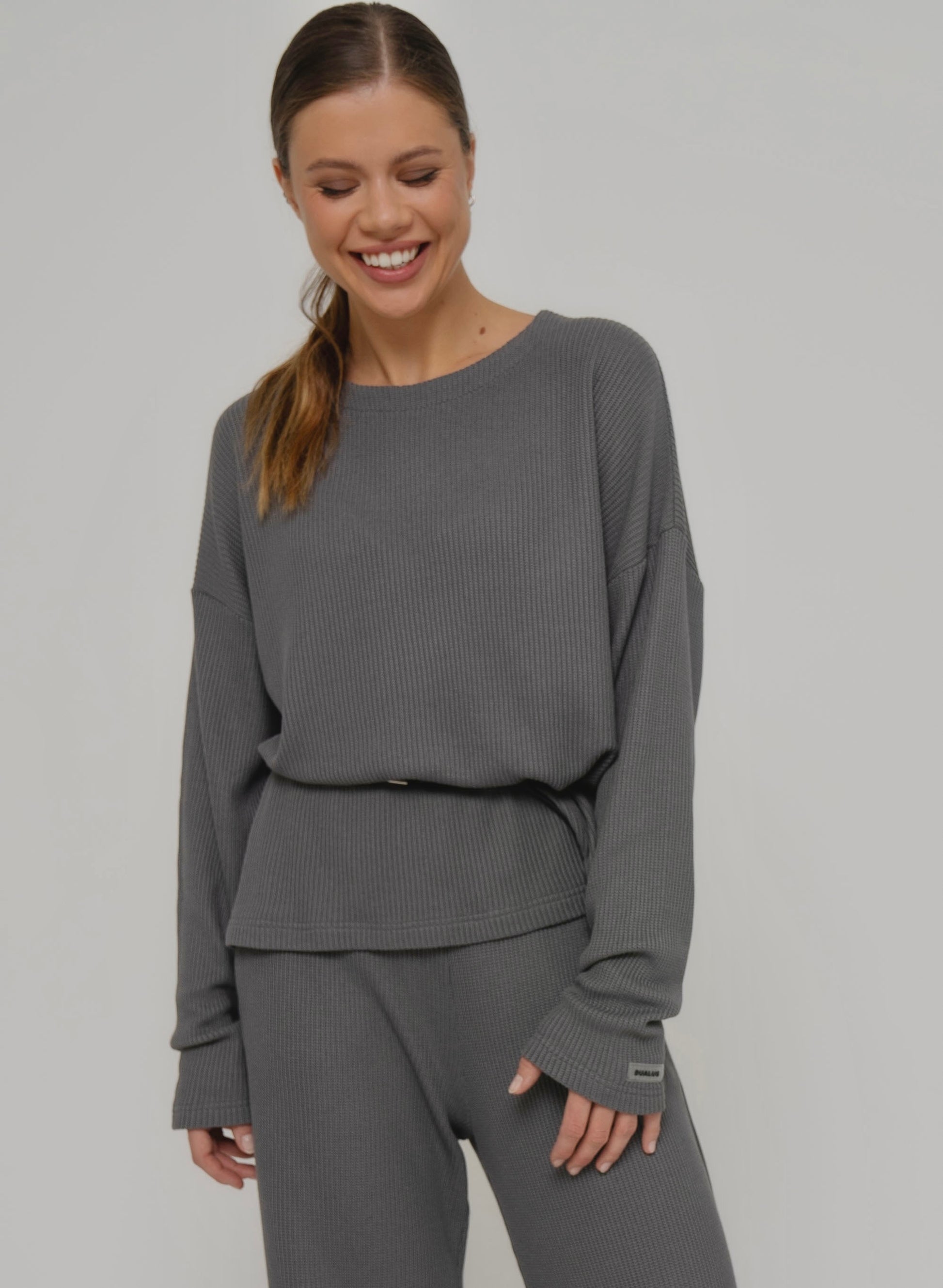 - Mix & match. Combine trousers and a scarf of the same fabric with the sweater. However, it will also fit well with other DUALUS models.